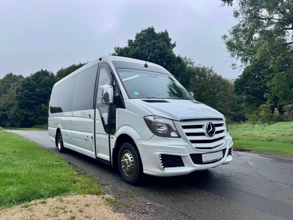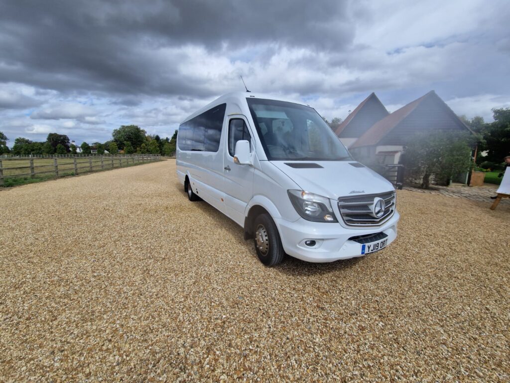 Luxury 16 Seat Mercedes Mini Coach in Bicester Choosing the right vehicle for group travel is key. It shapes the whole experience, not serves as transport. Explore the historic streets and charming shops of Oxfordshire with ease. The 16-seat Mercedes